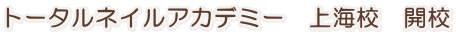 2013年6月、、中国・上海でトータルネイルアカデミー上海校を開校しました。 現在、1号校 2号校で多くの受講生が学んでいます。 ⇒ 上海校HP